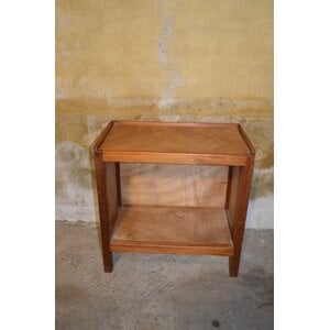 Vintage open bijzetkastje van mahoniehout uit de jaren 60. Ooit gebruikt als theekastje of bureautje, nu ideaal als sfeervol bijzetmeubel.