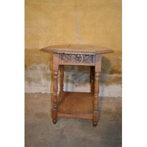 Fraaie antieke chiffonnière met 4 grote laden en 1 verborgen lade, een klep om te gebruiken als bureau of werkblad met daarachter 6 kleine laden.