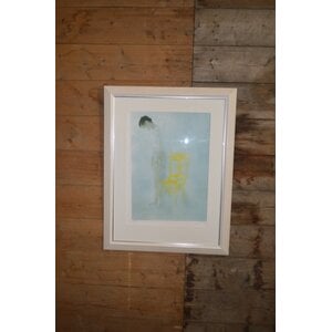 Gesigneerde en genummerde kleurenprint van Robert Heindel, Danser met de gele stoel (Dageraad). Ingelijst in wit met zilverkleurige accentrand.