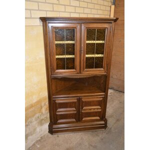 Praktische donker eiken hoekkast met deur. Ideaal om loze hoeken te benutten en extra opbergruimte te creëren. Compleet met sleutel.