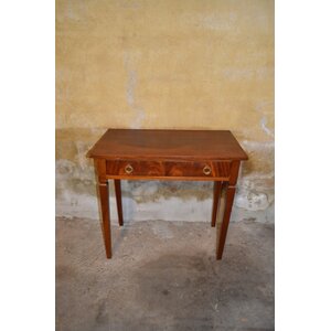 Dit mahonie Louis XVI model bijzetafeltje heeft een verfijnde vormgeving en een praktische lade.