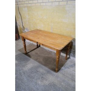Grote massief grenen gezinstafel uit de late jaren 60 / begin 70 met lade en gedraaide poten. Robuust, sfeervol en karaktervol.