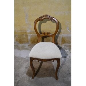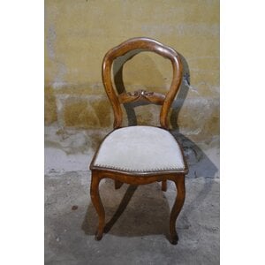 Elegant Engels stoeltje circa 1880 met medaillonrug. Fraaie houtpatina en subliem vakmanschap. Goede vintage staat met lichte gebruikssporen.