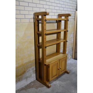 Een echte blikvanger van zwaar eikenhout. Deze vintage kaaskast met open vakken en onderkast combineert karakter, ruimte en sfeer in één krachtig meubel. Gebruikssporen.
