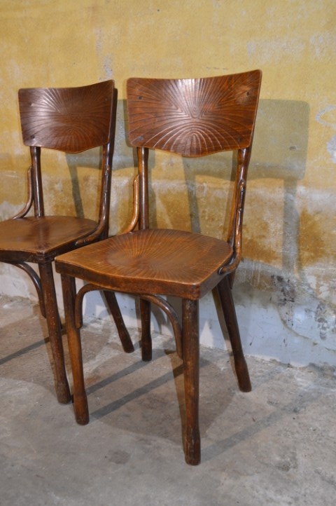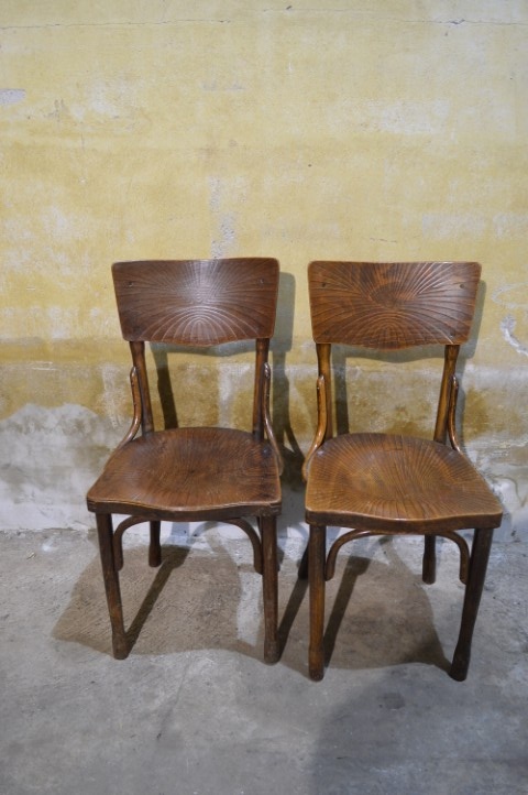 Twee prachtige antieke Thonet stoelen uit het begin van de 20e eeuw, uitgevoerd in karakteristiek gebogen hout. De stoelen hebben een fraai Jugendstil motief in de rugleuning en laten mooi het vakmanschap van Thonet zien. Dankzij hun elegante vorm passen ze zowel in een klassiek als eclectisch interieur. De stoelen verkeren in goede staat met gebruikssporen passend bij de leeftijd en zijn behandeld tegen houtworm.
