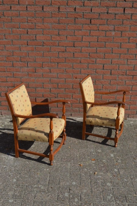 Breng nostalgie in huis met deze charmante eiken armfauteuiltjes uit de jaren 50.