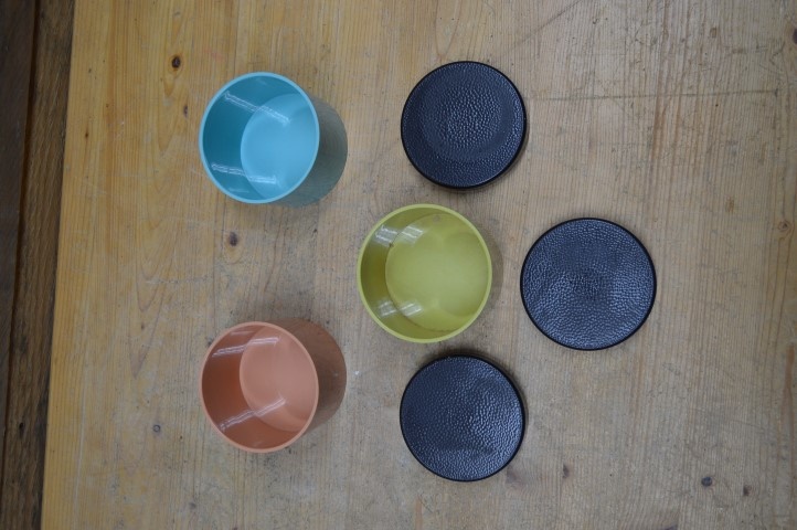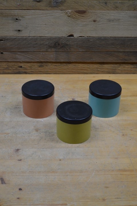 Dankzij het plastic zijn ze bovendien gemakkelijk schoon te maken, en hoewel deze retro potjes tijdens eerder gebruik gebruikssporen hebben opgelopen, zijn deze nog erg goed te gebruiken als decoratie of bijvoorbeeld als opbergbakjes voor kleine spulletjes.