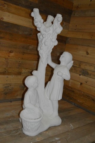 Dit betoverende tuinbeeld toont Adam en Eva als spelende kinderen onder een appelboom – een krachtig symbool van onschuld, natuur en verbondenheid. De liefdevolle details en speelse houding brengen leven en emotie in dit kunstwerk van steen. Het beeld straalt warmte en karakter uit en vormt een echte blikvanger in siertuinen, borders of bij een vijver. Gemaakt van weerbestendig beton en geschikt voor jarenlang buitengebruik.