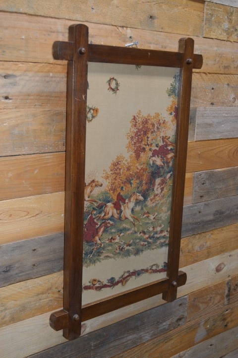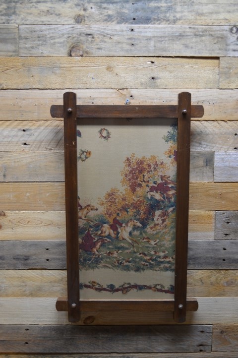 Met deze afbeelding van een ouderwetse slipjacht, ook wel vossenjacht genoemd, die is geplaatst in een landelijke donkere houten lijst en uitgevoerd in mooie warme herfstkleuren, geeft u een kale muur in een handomdraai wat extra kleur.