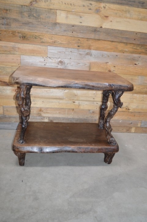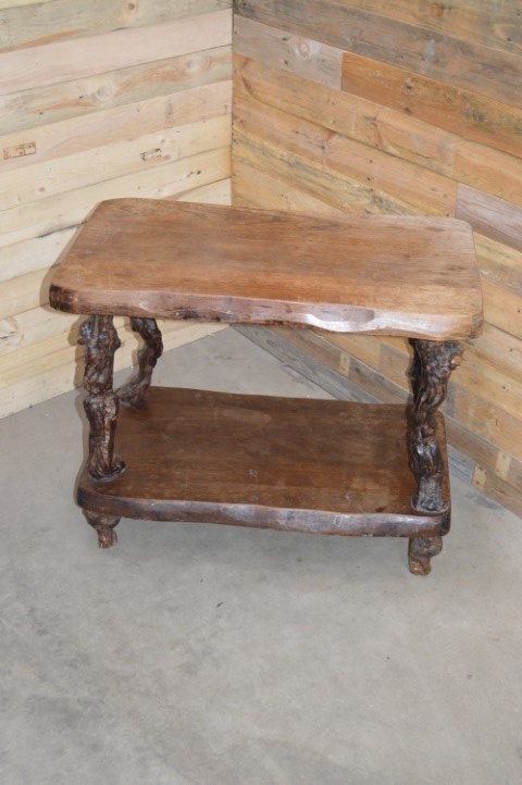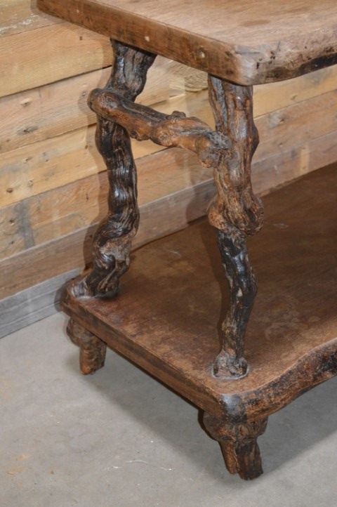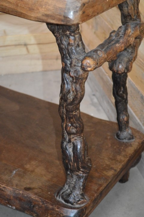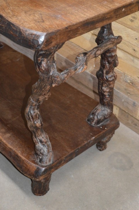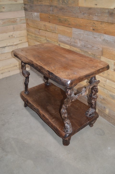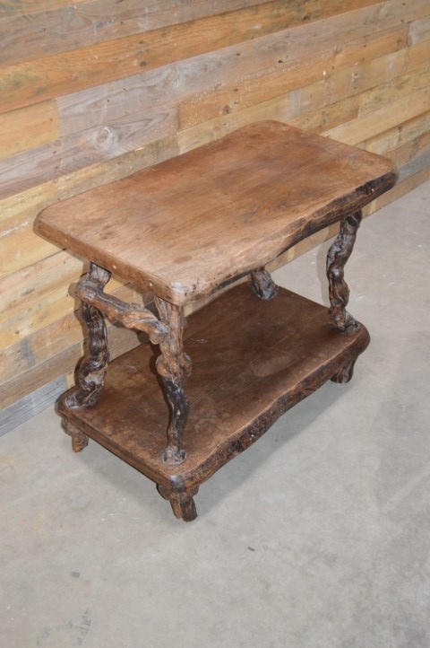 Een bruut landelijk Frans bijzettafeltje. Een tafeltje met goed gebruikt boven- en onderblad en poten waarvan je goed kan zien dat het oude druivenranken zijn. Dit antieke tafeltje is mooi door zijn eenvoud en speelse uitstraling.