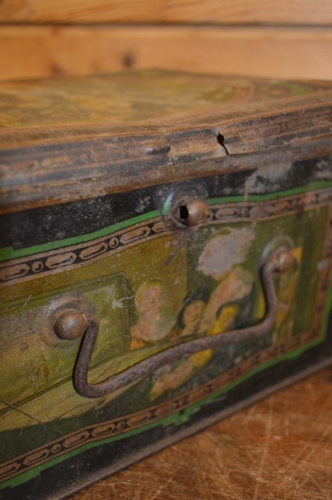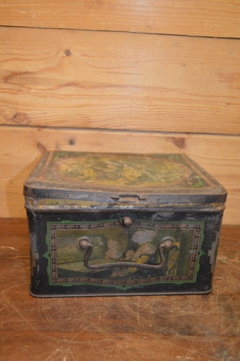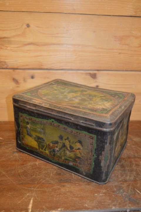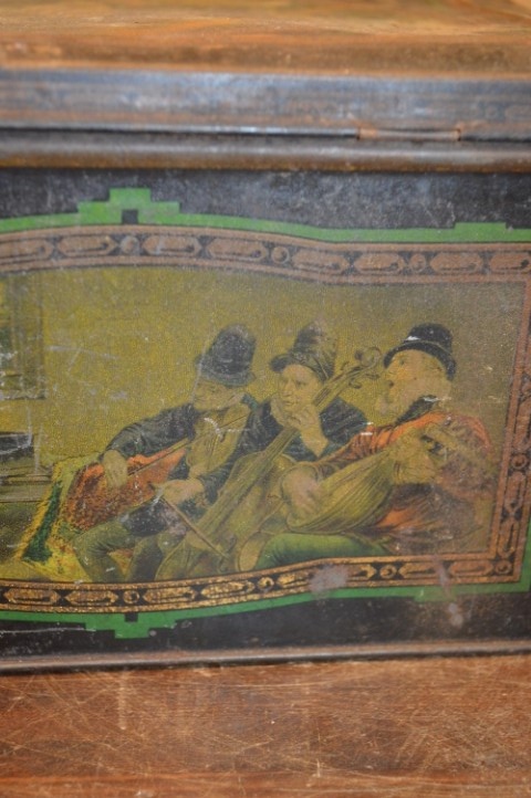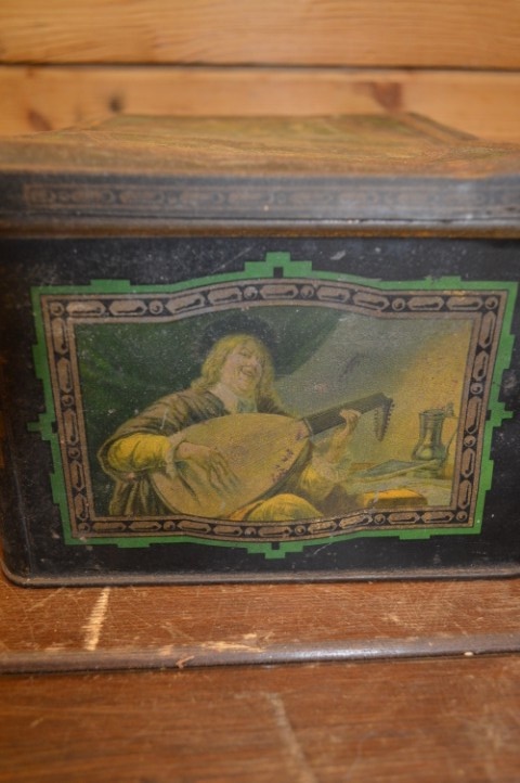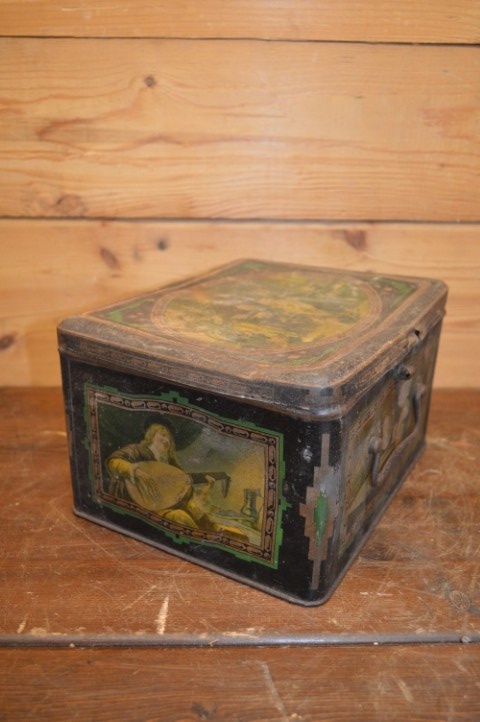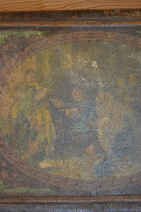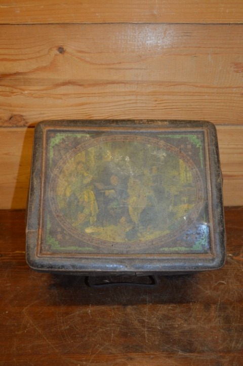 Antiek blik met gregoriaanse beschilderingen – Wed. J. Bekkers Dordrecht – Decoratief object