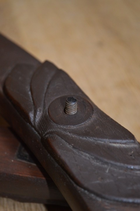 Natuurlijk is het een gebruikt tweedehands klapstoeltje dat gebruikssporen heeft. 1 moertje mist en er zal gezocht moeten worden naar een passende moer want het heeft een ouderwets schroefdraad.