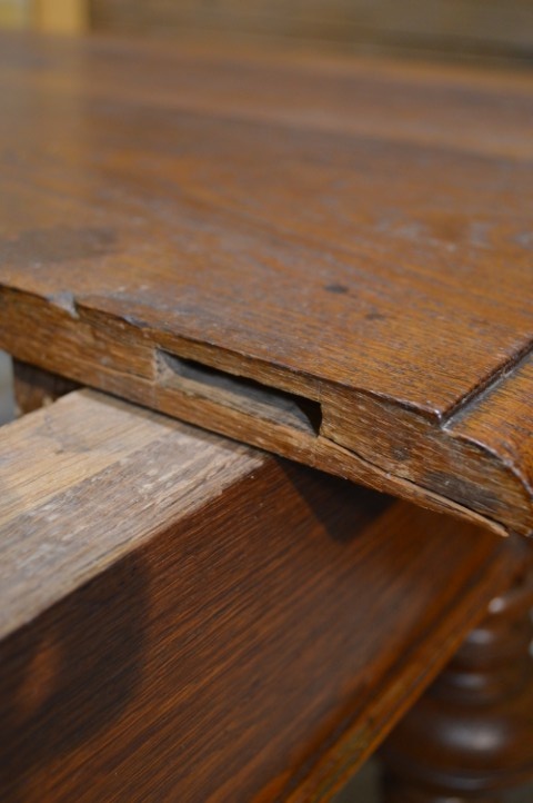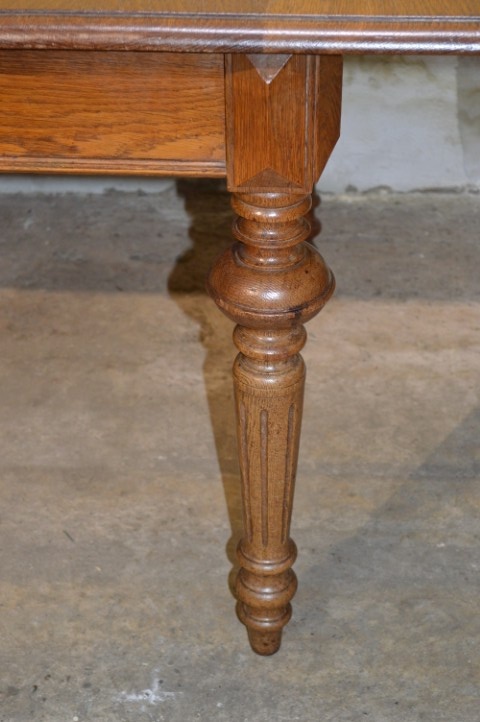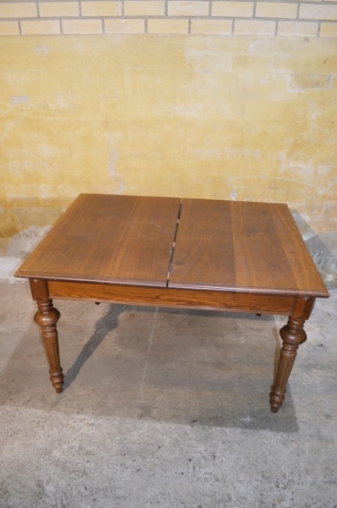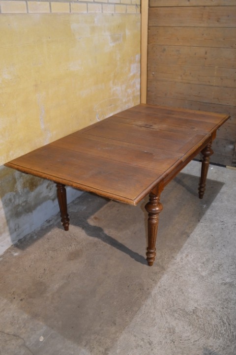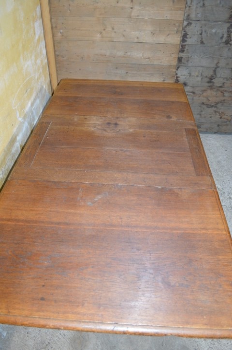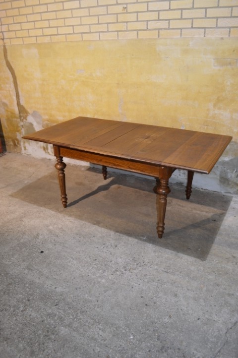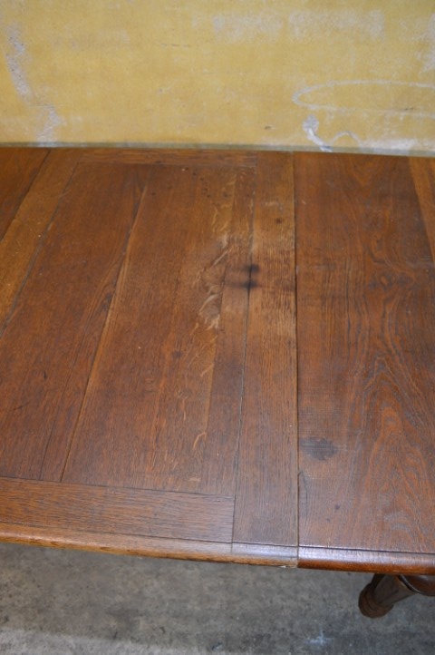 Schitterende antieke eiken uitschuiftafel, waarschijnlijk afkomstig uit de Elzas, met ruimte voor circa 10 personen.De antieke eiken uitschuiftafel is een schitterend en praktisch meubelstuk, waarschijnlijk gemaakt in de Elzas in Frankrijk. Dankzij het uitschuifbare blad creëer je eenvoudig extra ruimte, waardoor je met circa 10 personen comfortabel kunt tafelen of samen kunt werken en knutselen. Het eikenhout heeft een warme uitstraling met een mooie tekening in het blad, wat zorgt voor veel sfeer in huis. De tafel vertoont gebruikssporen; het blad schuift niet volledig in en er zijn vlekken aanwezig. Juist deze kenmerken geven de tafel karakter en maken hem tot een authentiek stuk met een verhaal.