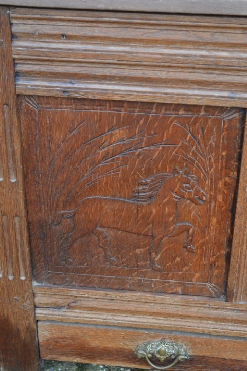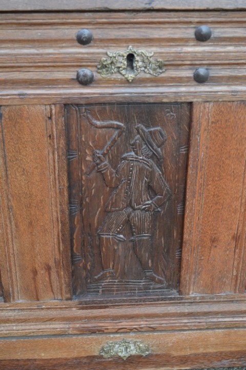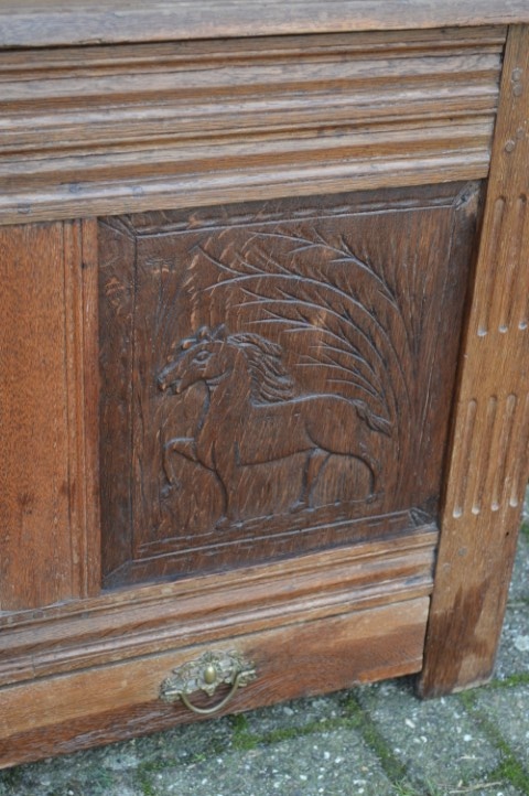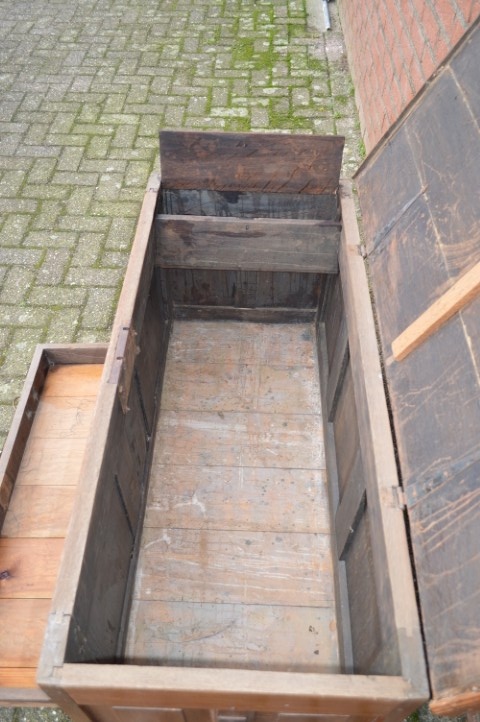 Het meubelstuk is al lang in gebruik en heeft daardoor gebruikssporen opgelopen. Helaas is de sleutel zoek geraakt. Hij is behandeld tegen houtworm.