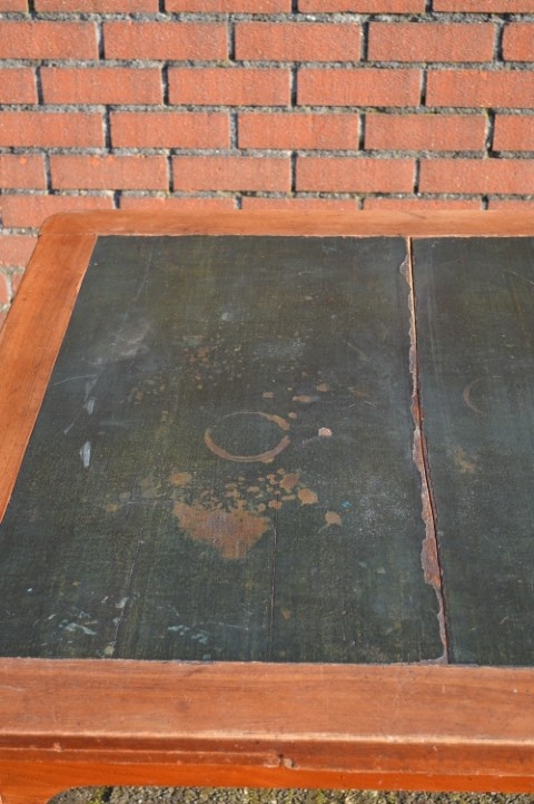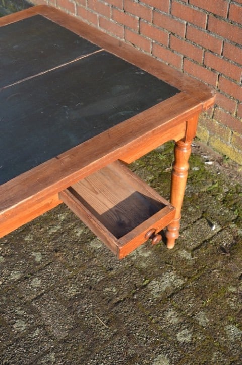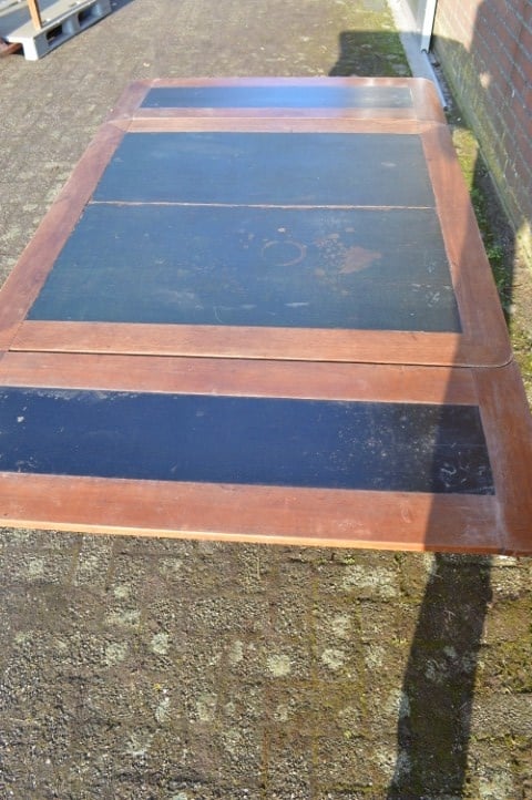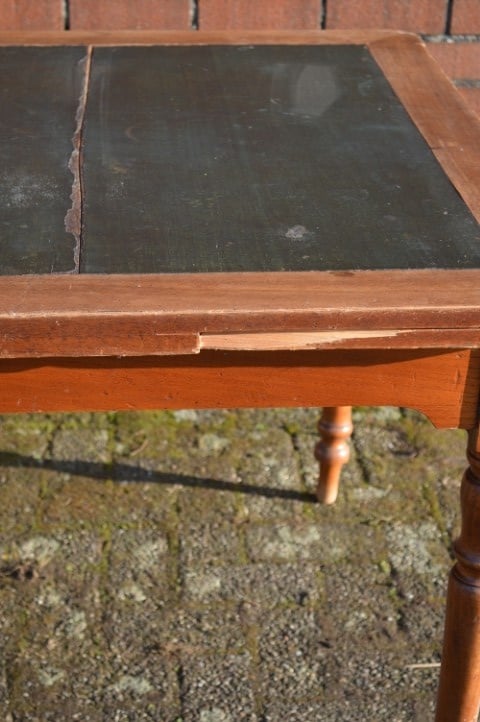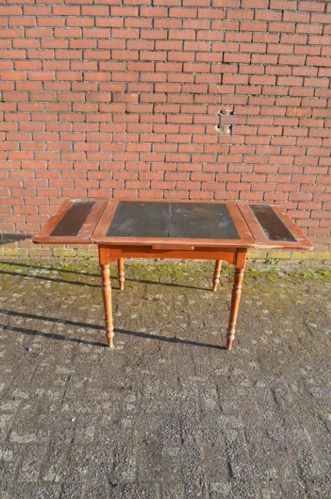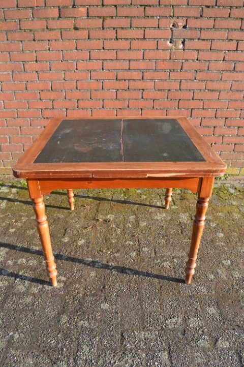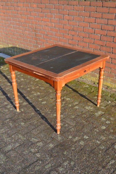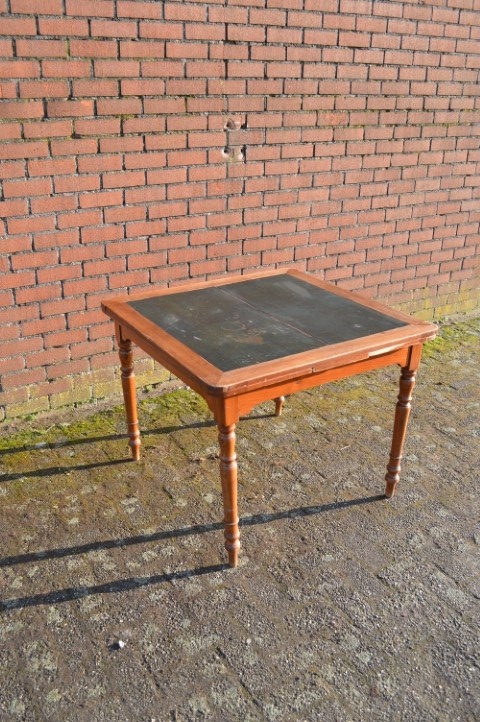 Een tafel met geschiedenis en uitstraling. Ooit bedoeld voor kaartspel en gezelschap, nu een bijzondere blikvanger voor de eetkamer.