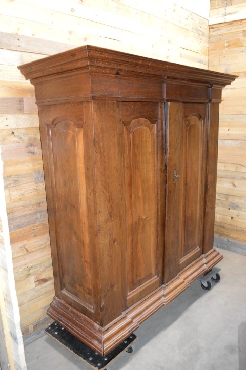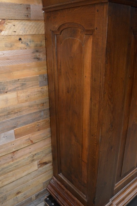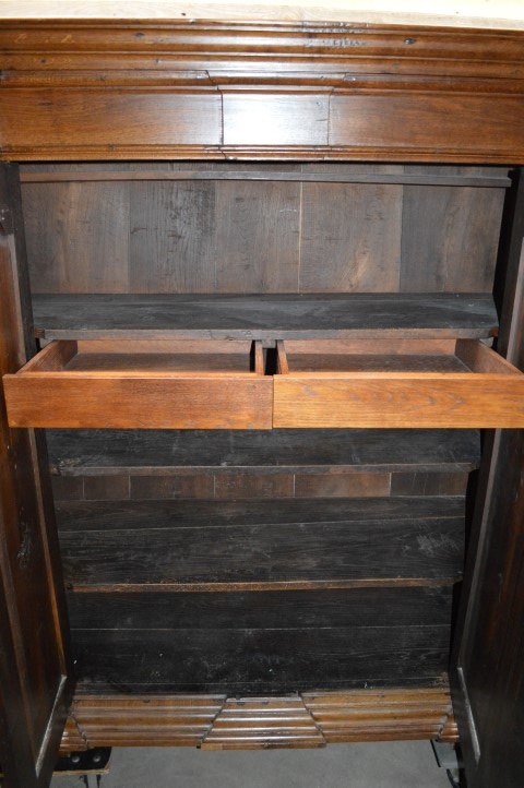 Antieke Biedermeier kast gemaakt van massief eikenhout. Een fantastische kledingkast of servieskast. Het mooie eikenhout, dat door de tijd een diepere warme levendige kleur heeft gekregen, maakt van deze kast een sieraad. Achter de deuren zitten 3 legplanken en 2 laden.