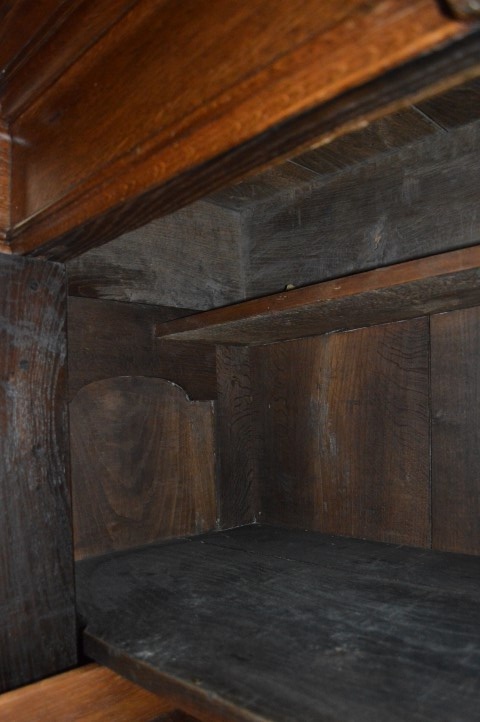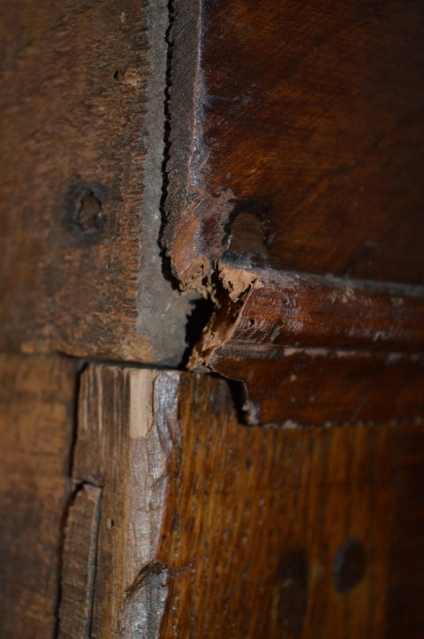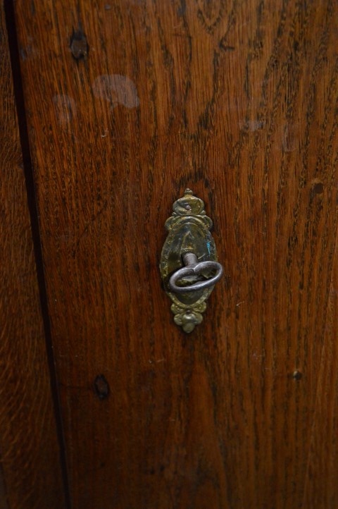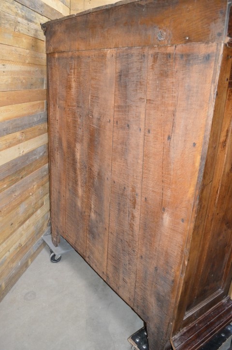 Natuurlijk heeft deze schitterende linnenkast, die al een eeuw lang gebruikt is, gebruikssporen. De kast is behandeld tegen houtworm.