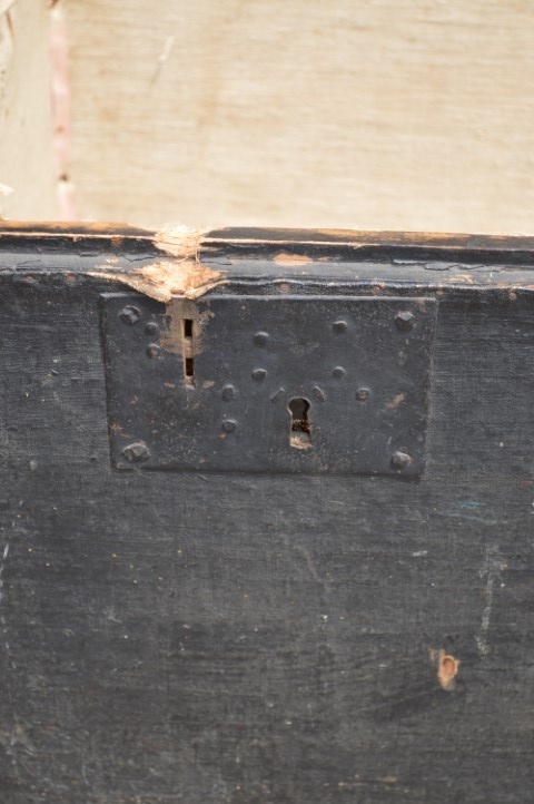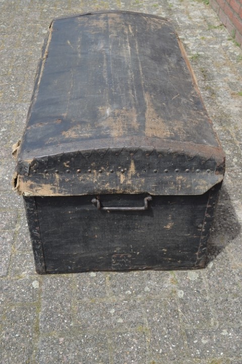 Zo een oude dekenkist heeft natuurlijk gebruikssporen opgelopen maar hij heeft daardoor wel zijn charme behouden. Er is helaas geen sleutel meer bij.