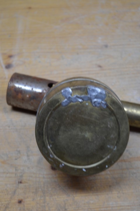 Omdat het een oude gifspuit of insectenspuit betreft zijn er natuurlijk gebruikssporen aanwezig, maar desondanks is dit een erg mooie ouderwetse decoratie met een lange historie.