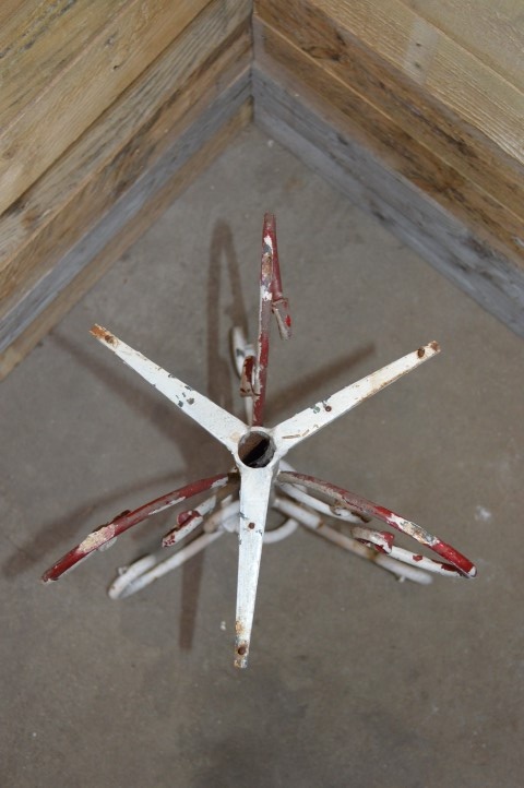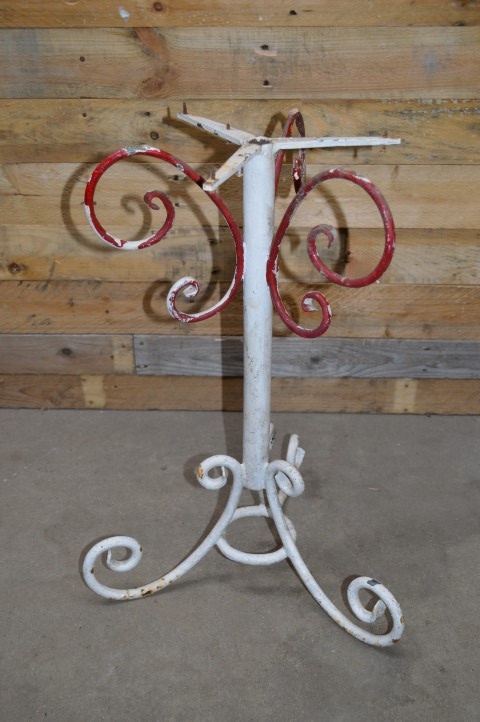 Een mooie, retro poot voor een buitentafel met een gebruikt uiterlijk.