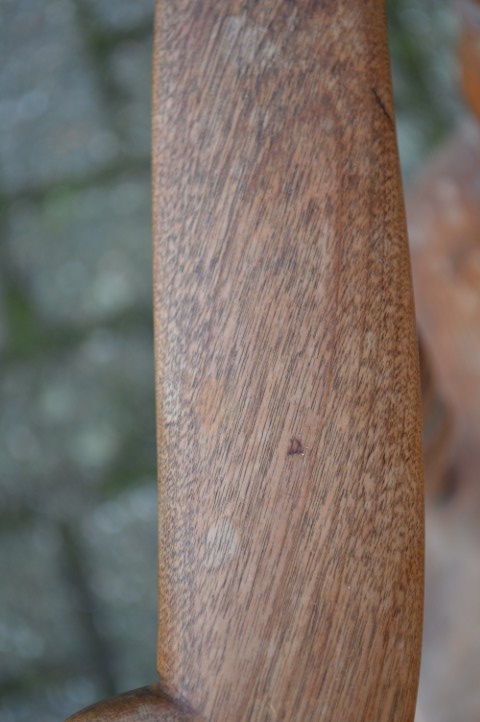 Natuurlijk is het een veel gebruikte antieke armstoel en heeft hij gebruikssporen, al zal een goede poetsbeurt met zuivere bijenwas hem al heel veel mooier doen maken.