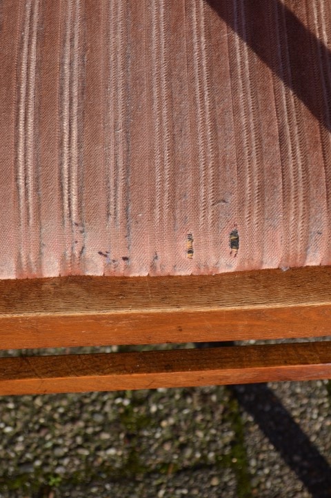 Deze tweedehands stoel heeft in zijn vorige leven het een en ander meegemaakt waardoor er kleine gebruikssporen zijn achtergebleven. Hij heeft wat extra aandacht nodig en de stoffering moet worden vernieuwd.