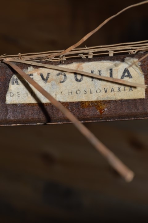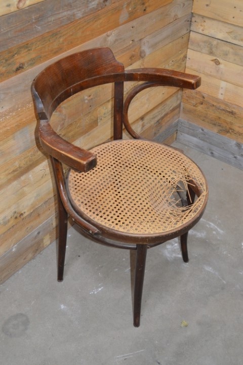De stoel heeft gebruikssporen wat niet verwonderlijk is gezien de leeftijd van de houten stoel. De stoel op zich is een beetje wiebelig en de mat om op te zitten is helaas kapot en zal opnieuw gemat moeten worden.