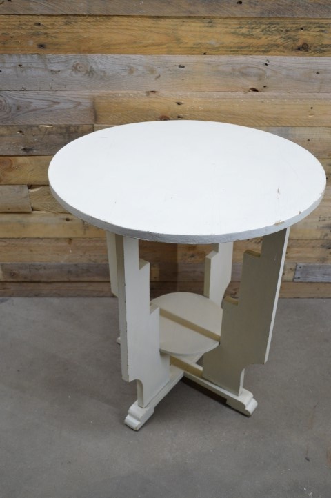 Een mooi tweedehands Art Deco bijzettafeltje. Een tafeltje voor naast de bank of om als plantentafeltje voor een grote plant of vaas te gebruiken. Een leuk decoratief Amsterdamse School tafeltje dat vooral de aandacht trekt met haar unieke getande trapjes poten,