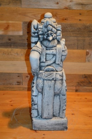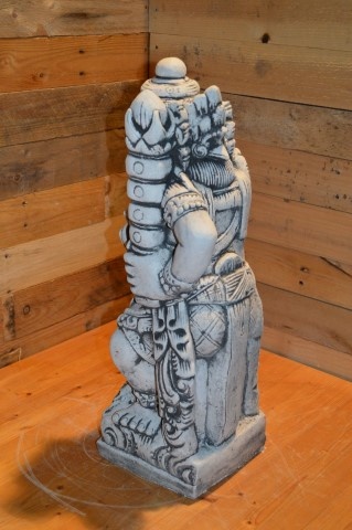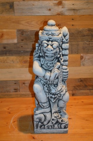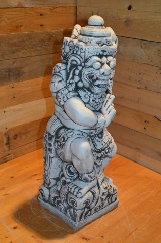 Deze betonnen Balinese tempelwachter met wapen links is een indrukwekkend en prachtig gedetailleerd tuinbeeld dat direct de aandacht trekt. Hij staat krachtig en waakzaam, precies zoals de traditionele wachters bij tempelingangen op Bali. Dit beeld is ook leverbaar op een pilaar, wat hem extra statigheid geeft. Zijn broer – de wachter met het wapen rechts – is eveneens verkrijgbaar bij Loodsvol.com, zodat u een harmonieus paar kunt samenstellen voor bij de entree van uw tuin of woning.