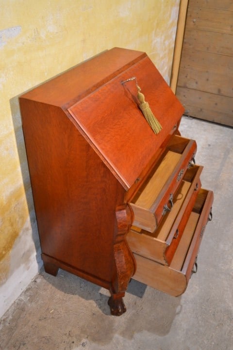 De secretaire verkeert in gebruikte staat met gebruikssporen en is gefineerd uitgevoerd.