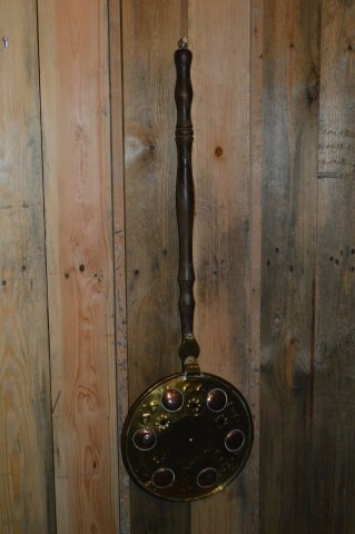 Mooie vintage bedstoof, ook wel beddenpan genoemd. De bedstoof heeft een mooi gevormde eikenhouten steel. De stoof zelf heeft een pan van roodkoper en een deksel van geelkoper. Een beddenpan of bedstoof is een ouderwets (bijna antiek) landelijke brocante gebruiksvoorwerp.
