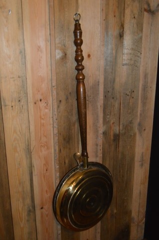 Mooie vintage bedstoof, ook wel beddenpan genoemd. De bedstoof heeft een mooi gevormde eikenhouten steel. De stoof zelf heeft een pan en een deksel van geelkoper. Een beddenpan of bedstoof is een ouderwets (bijna antiek) landelijke brocante gebruiksvoorwerp.