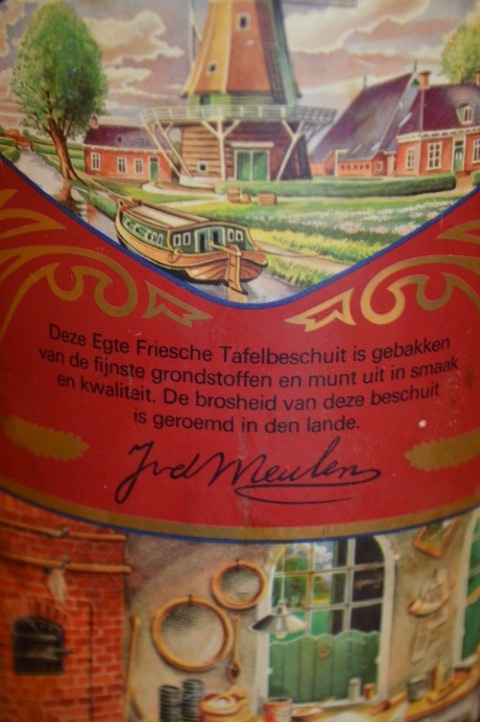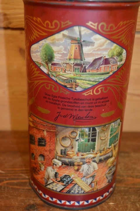 Dit Van der Meulen Friesche Tafelbeschuit jubileumblik uit de periode 1910-1985 is een prachtig vintage verzamelobject. Het blik vertoont gebruikssporen die passen bij zijn leeftijd, wat juist bijdraagt aan de authentieke uitstraling. Ideaal voor verzamelaars of als decoratie in een retro keuken. Van der Meulen Friesche Tafelbeschuit jubileumblik is zowel nostalgisch als een blikvanger die de geschiedenis van het merk prachtig laat zien.