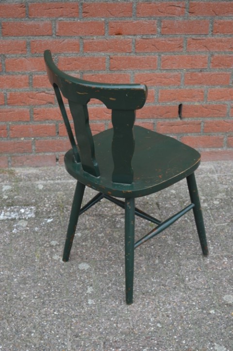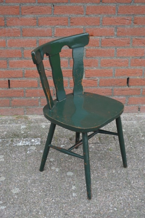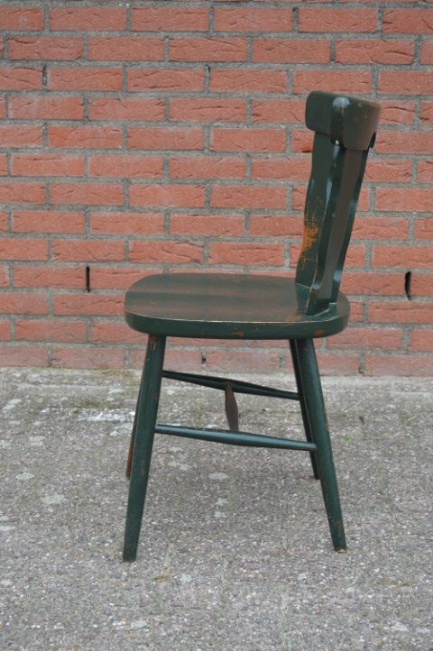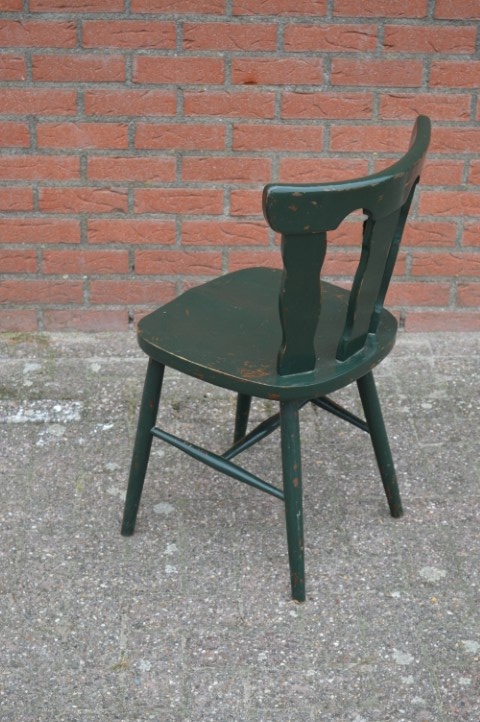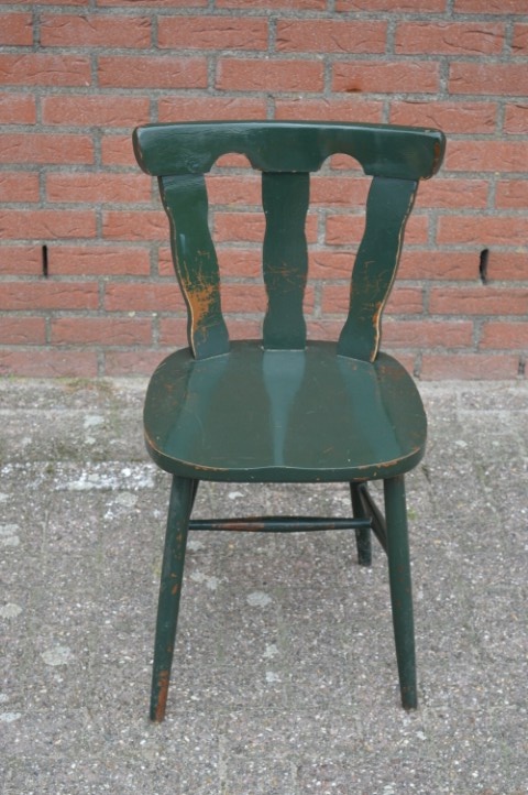 Deze beukenhouten caféstoel is groen geschilderd en straalt een heerlijke brocante charme uit. Door de natuurlijke slijtage van de verf heeft de stoel een authentiek, doorleefd uiterlijk dat perfect past in een landelijk of vintage interieur. Of u hem nu gebruikt als eetkamerstoel, decoratief accent of in een horecaomgeving, dit karaktervolle meubel brengt direct sfeer in de ruimte.
