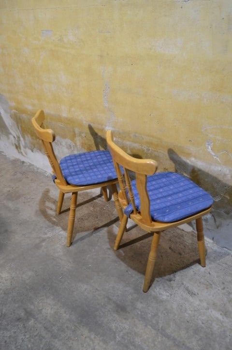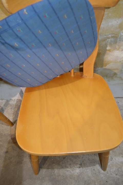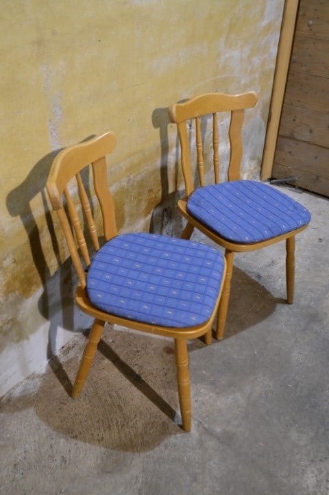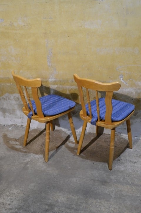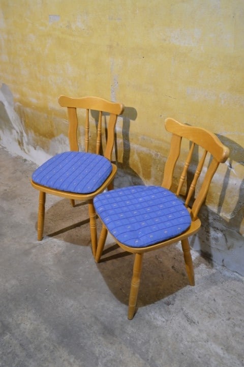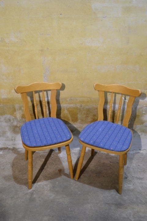 Dé onverwoestbare caféstoel die nooit uit de mode raakt. Deze set van 2 vintage beukenhouten stoelen met blauw kussen brengt direct warmte en karakter in keuken of eetkamer. Stevige frames, degelijk vakwerk en gemaakt om generaties mee te gaan. De bekleding vertoont gebruiksslijtage passend bij de leeftijd en kan eenvoudig vernieuwd worden. Ook de lak heeft sporen van gebruik. Tijdloos. Sterk. Altijd goed.