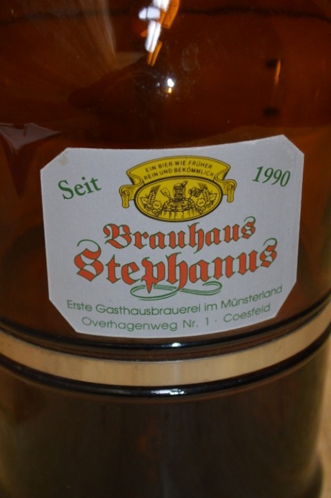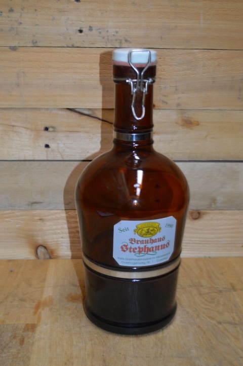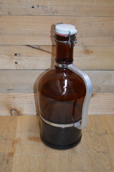 3 liter beugelfles van het merk Brauhaus Stephanus. Deze fles heeft ook een sierlijke metalen handgreep zodat je de fles handig kan gieten. Leuk voor decoratie in een mancave, voor een verzamelaar of als aankleding in een bruine kroeg.