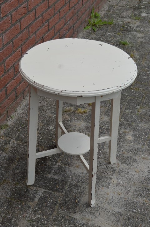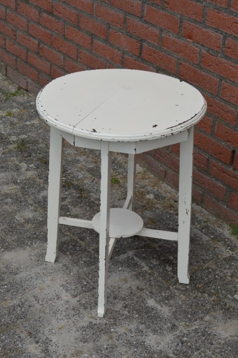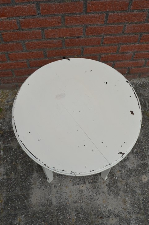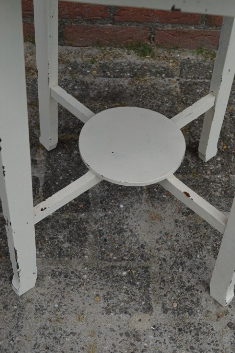 Door het vele gebruik zijn er gebruikssporen en de vorige eigenaar heeft het tafeltje wit geschilderd.