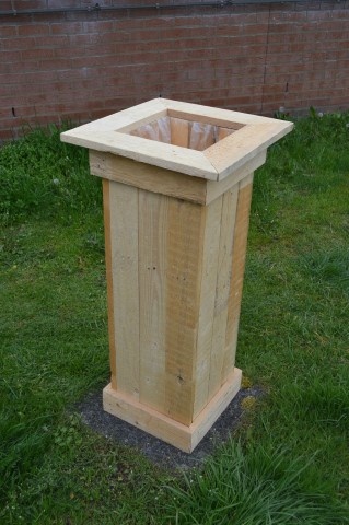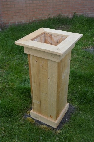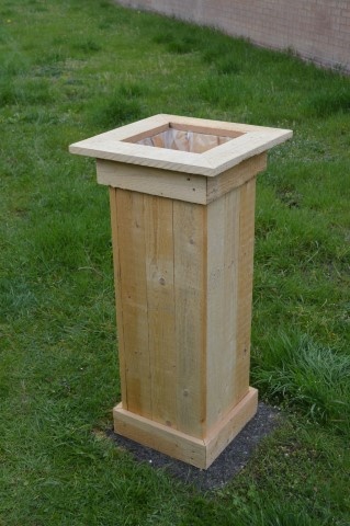 Deze bloembak van pallethout is gemaakt van hergebruikt hout en voorzien van een stevige plastic binnenlaag, zodat het hout beschermd blijft tegen vocht. Door de robuuste uitstraling en duurzame afwerking past deze houten plantenbak perfect op het terras, balkon of in de tuin. Omdat het hout onbehandeld is, kunt u de bak bovendien eenvoudig zelf lakken of schilderen in elke gewenste kleur.