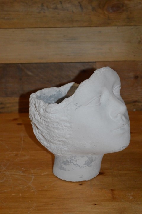 De bloempot hoofd van beton is een origineel vormgegeven plantenbak die eruitziet als een menselijk hoofd. Gemaakt van stevig beton, is hij geschikt voor zowel binnen als buiten. Wanneer u er een plant in zet met sprieterige, smalle bladeren, ontstaat een prachtig effect alsof het haar uit het hoofd groeit. Een echte blikvanger op het terras, in de vensterbank of in een bloemperk. Deze pot is niet alleen functioneel maar ook decoratief zeer sterk.