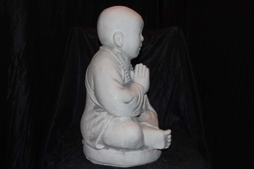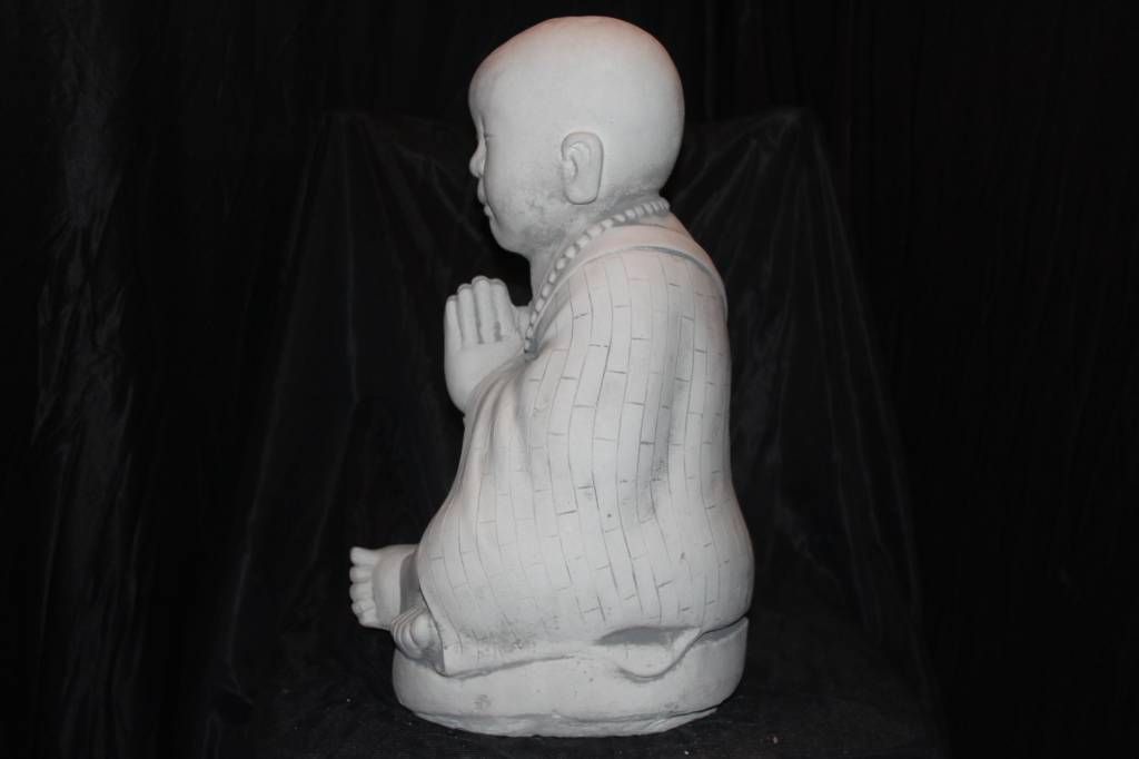 Dit betonnen beeld van een mediterende Boeddha is een stijlvolle en serene toevoeging aan tuin of terras. De houding straalt vrede en bezinning uit, waardoor het beeld niet alleen decoratief is, maar ook een bron van rust in de buitenruimte. Dankzij het duurzame beton kan het beeld zowel in een beschut hoekje als in het volle zonlicht staan, zonder aan uitstraling te verliezen. Een prachtige blikvanger voor iedereen die spirituele sfeer wil toevoegen.