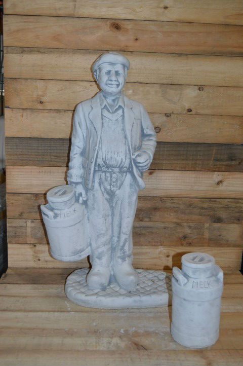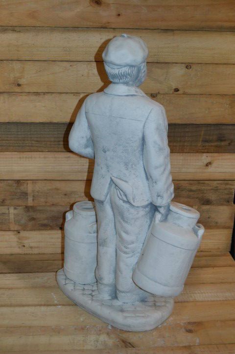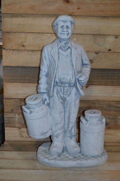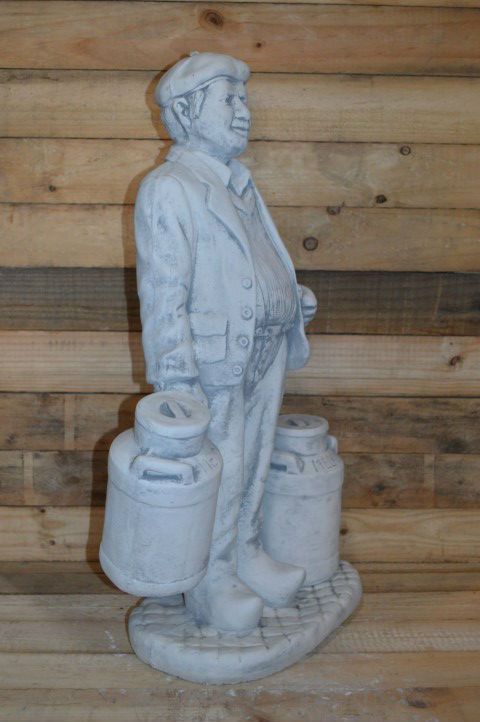 Dit betonnen beeld boertje met melkbussen kan overal in uw tuin geplaatst worden. Door een kleur te geven lijkt hij net echt. Het is een decoratief ornament dat allure en sfeer toevoegt. Ideaal ook als cadeau voor iemand die met pensioen gaat of een landelijke woning betrekt.