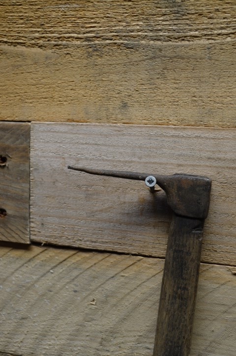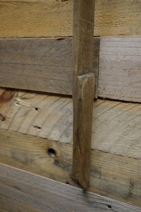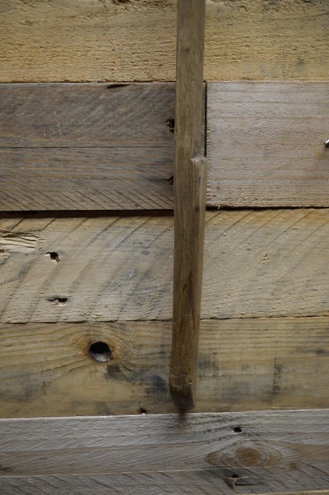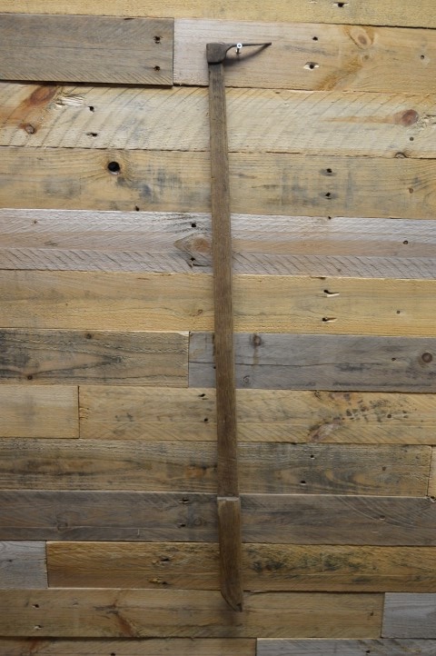 Een oud boeren gereedschap, waarschijnlijk een 'haalhaak' om de hooibalen van de hooizolder te krijgen. Het is een gok omdat wij niet precies weten waarvoor het gediend heeft. Mooi stukje folkloristisch gereedschap uit het begin uit vorige eeuwen dat nu gebruikt wordt als decoratie.