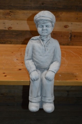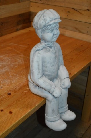 Deze charmante betonnen boer is zittend vormgegeven en ideaal om te plaatsen op de rand van een vijver, muurtje of bloembak. Ook doet hij perfect dienst als menner op een betonnen boerenkar – zie elders op de site voor combinaties.
