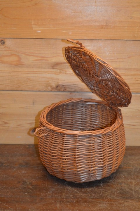 Deze prachtige gevlochten bolle mand met deksel is erg leuk als afsluitbare opbergmand voor kleine spulletjes maar ziet er ook goed uit als decoratie in huis en met de toevoeging van wat plastic kan het bovendien ook nog een hele mooie plantenbak of plantenmand worden.