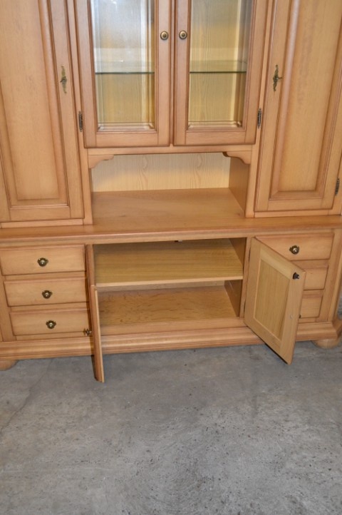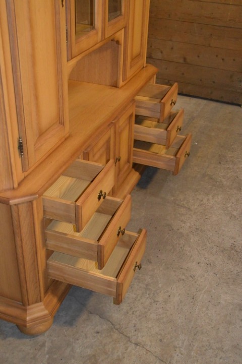 De onderkast biedt volop bergruimte dankzij de zes ruime lades en het centrale kastje met dubbele deuren. Een zware, solide eiken kast die niet alleen sfeervol oogt, maar ook enorm veel praktische ruimte biedt.