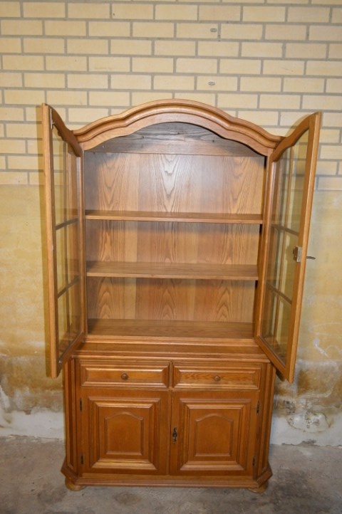 Het meubel vertoont gebruikssporen die passen bij zijn leeftijd en karakter. Eén sleutel is aanwezig. De ladenlopers verdienen aandacht, en de kunststof beugeltjes aan de achterkant van de laden zijn afgebroken. Ondanks deze kleine punten blijft het een prachtig en functioneel meubelstuk met een warme, landelijke uitstraling.