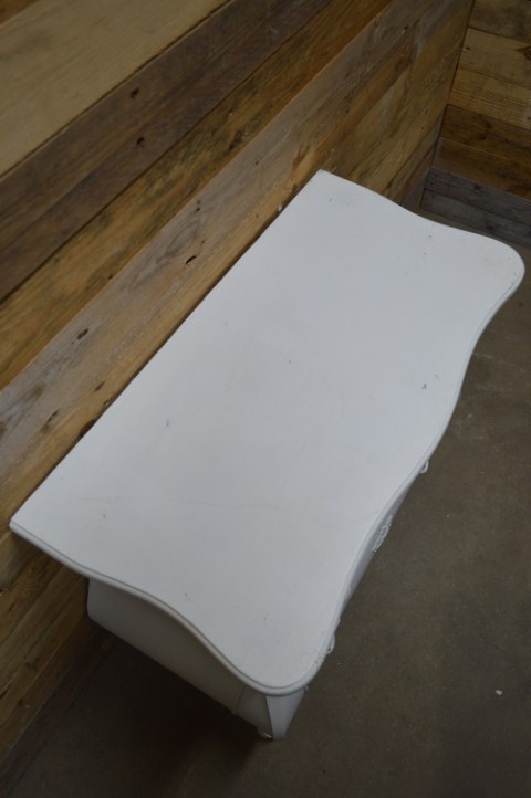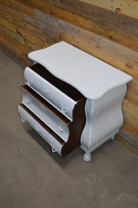 Het tweedehands vintage ladekastje uit de jaren 70 heeft gebruikssporen opgelopen en misschien is het wel leuk om hem opnieuw te schilderen.