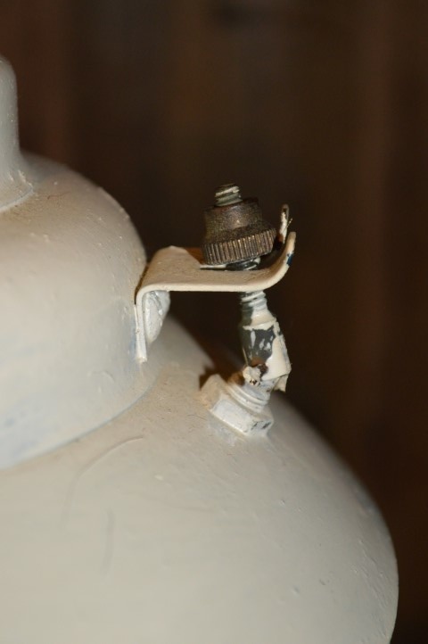 De lamp is overgeschilderd, dit zou een keer opnieuw gedaan kunnen worden om deze lamp weer mooi strak te krijgen.