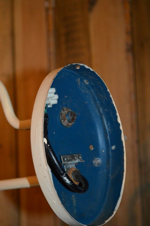 Deze industriële buitenlamp werd ook wel gebruikt als fabriekslamp.