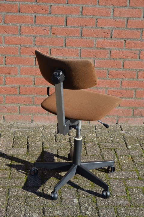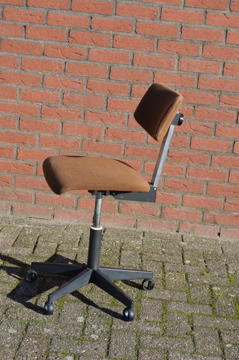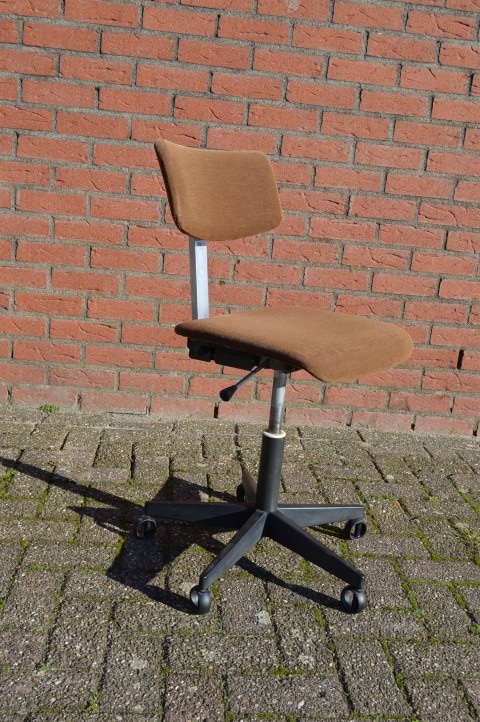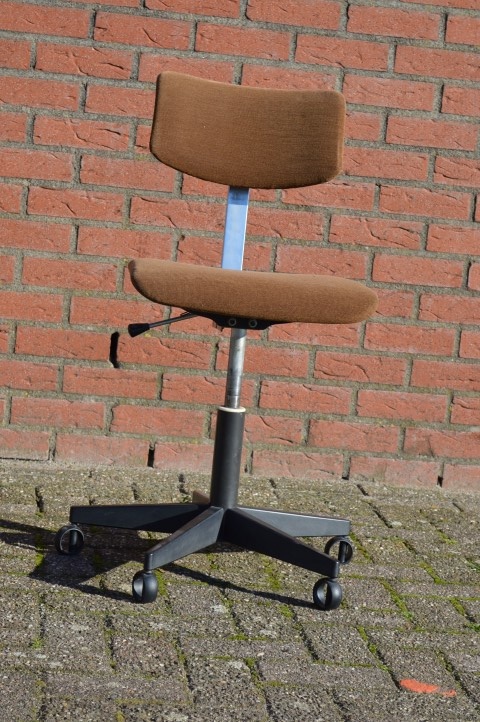 Deze mooie retro kantoorstoel is met zijn bruine stoffen bekleding en een verstelbaar metalen onderstel is ideaal om te gebruiken als bureaustoel voor thuis en op het werk, zodat u overal op comfortabele en ergonomische wijze met de computer kunt werken.